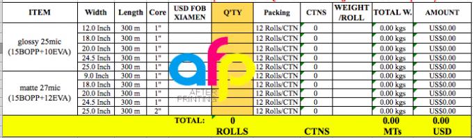 | Przezroczysty termiczny laminat BOPP | ||||||||